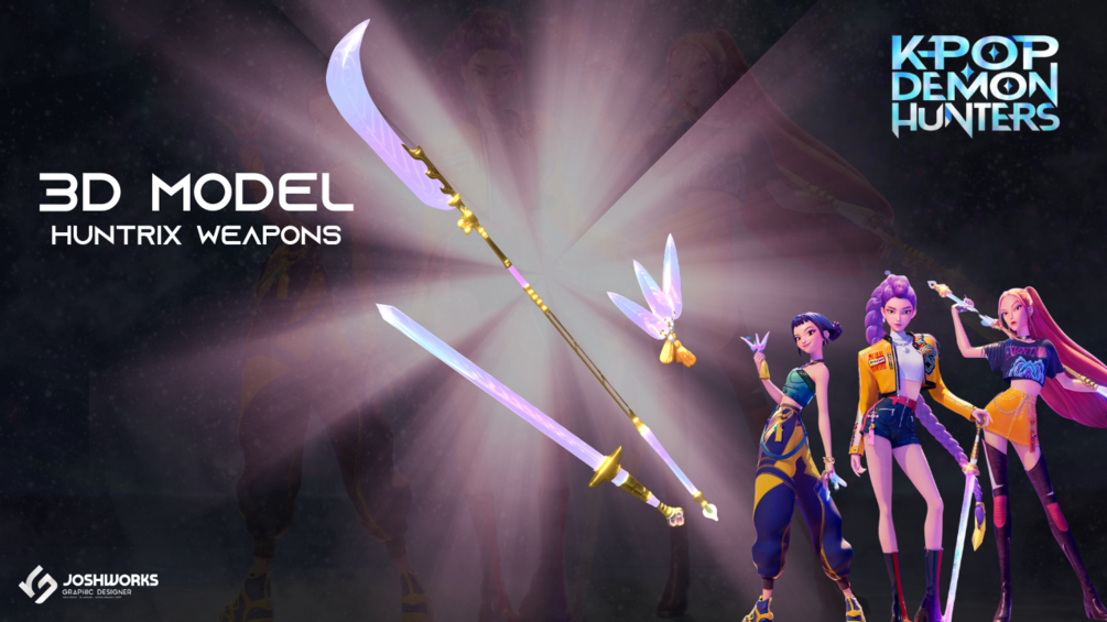 Perfect for game development, animation projects, fan art, or adding some K-pop demon-hunting flair to your 3D scenes. Each weapon is meticulously crafted to match the Netflix animated film's aesthetic.